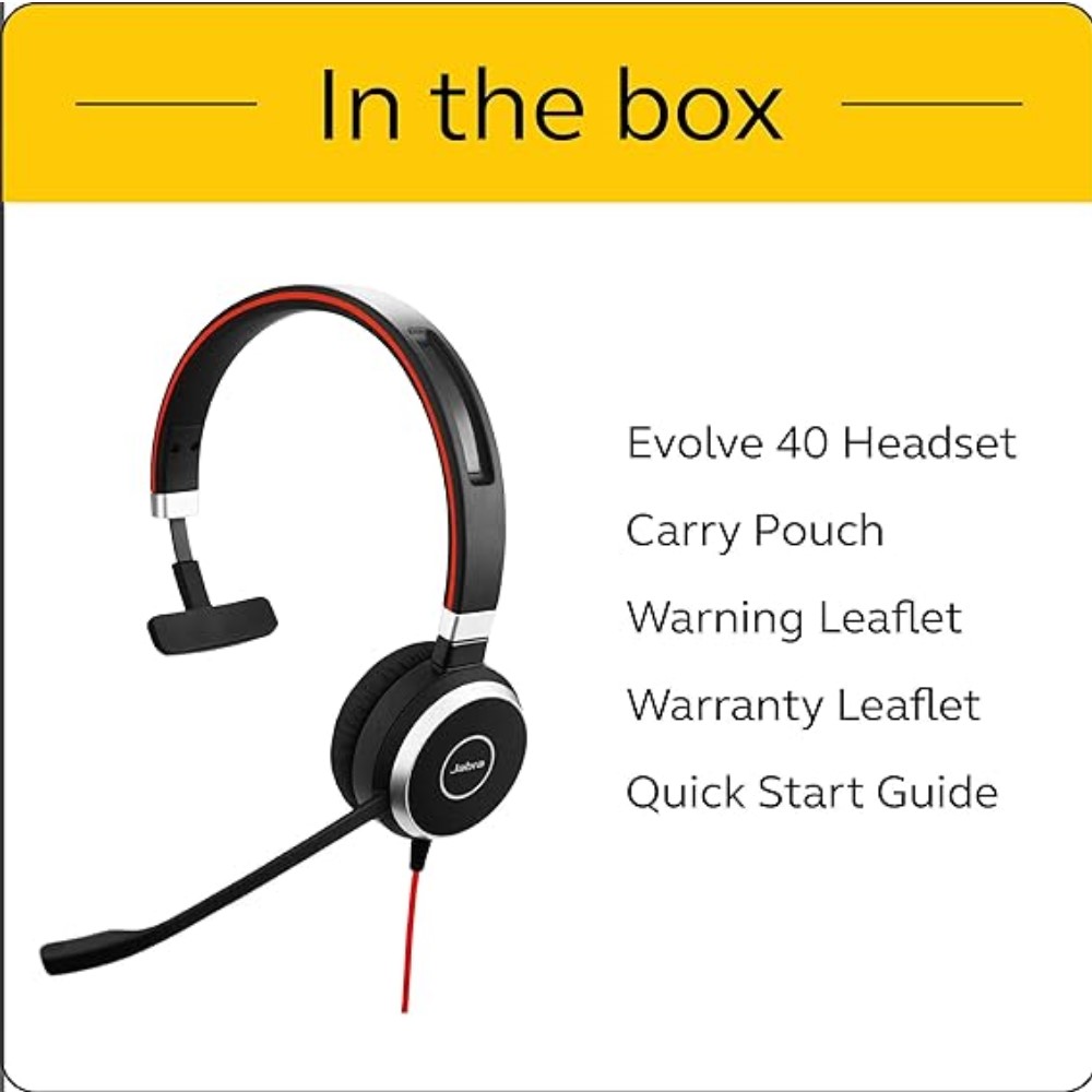 Jabra Evolve 40 Ms Professional Wired Headset, Mono – Telephone Headset For Greater Productivity, Superior Sound Calls And Music, 3.5mm Jack/Usb Connection, All-Day Comfort Design
