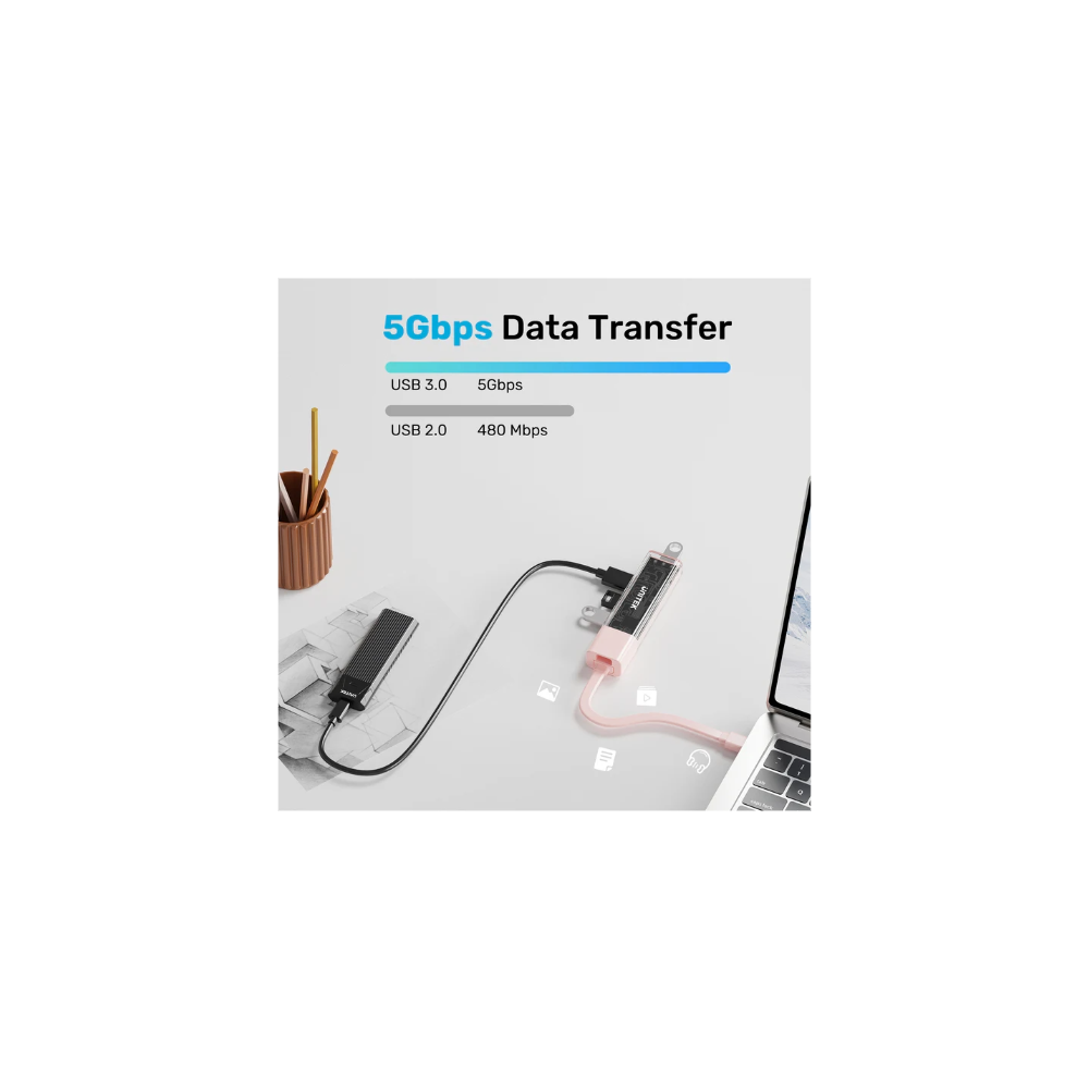 The UNITEK USB hub is available in three attractive colors: Pastel Pink (H1319APK), Cloud White (H1319AWH), and Cream Latte (H1319ACL). Each option combines stylish aesthetics with functionality, allowing you to choose a color that complements your personal style and workspace. Enjoy a perfect blend of elegance and practicality in your tech accessories.