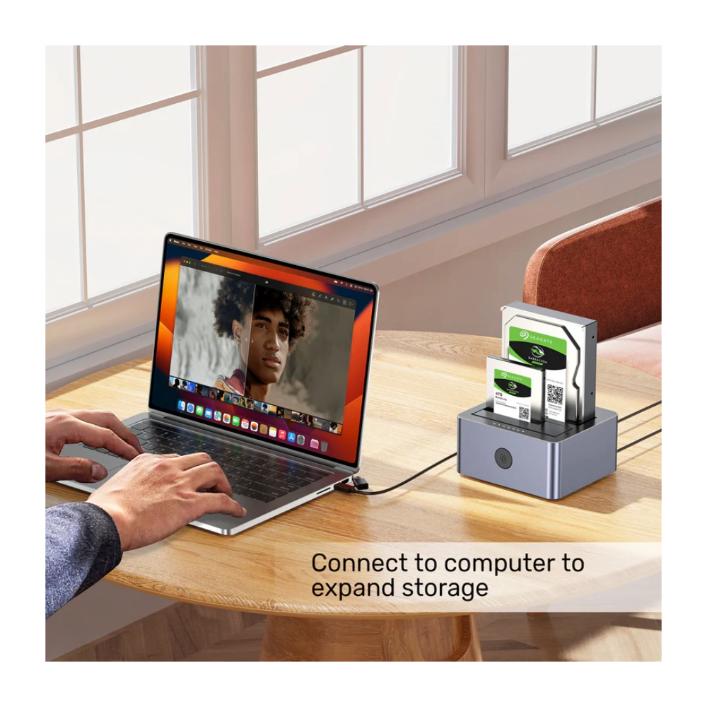 This Dual-Bay SATA Docking Station offers standalone drive cloning that makes it easy to backup your data. Users can also connect it to your computer with the dock and swap your drives as your scalable storage solution.