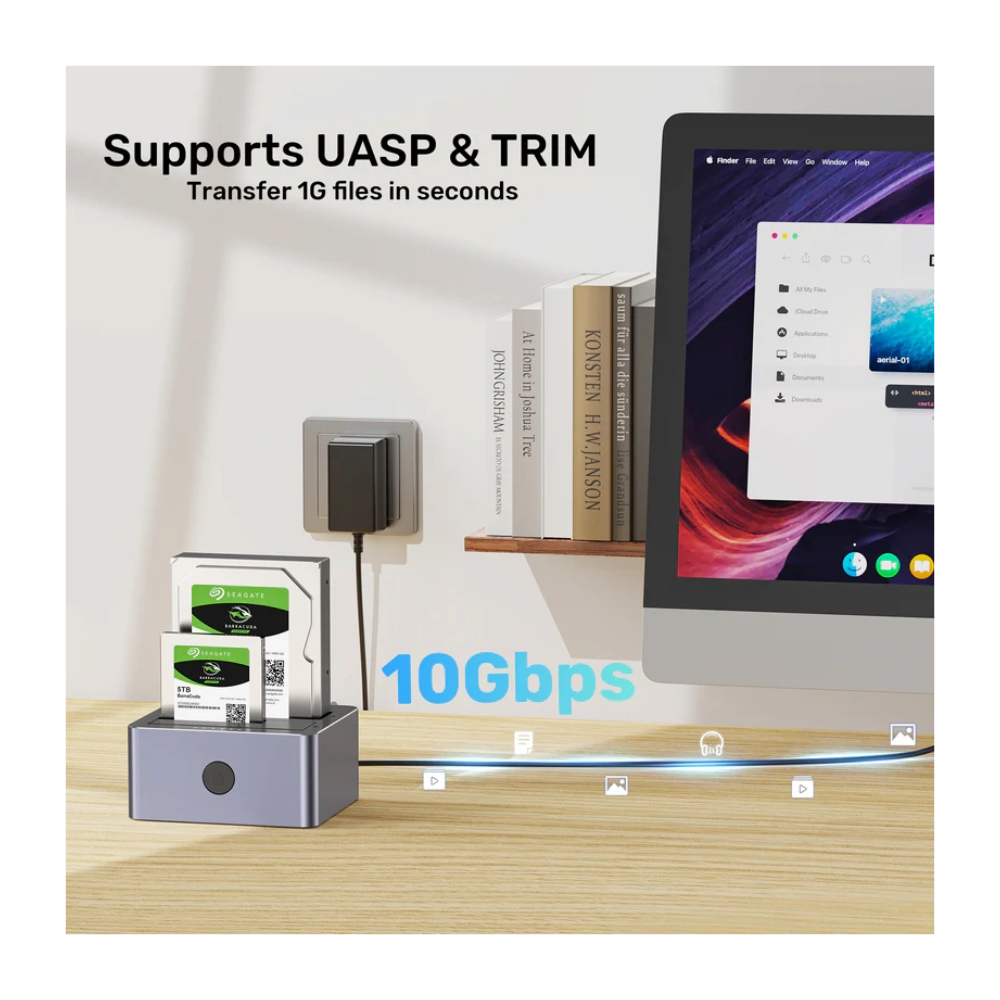 • Optimize Hard Drives For Best Performance: This Dual-Bay Docking Station supports UASP and TRIM. UASP enables faster data transfer to and from storage devices. TRIM can improve write performance, optimize the capacity of hard disk and enable it to last longer.