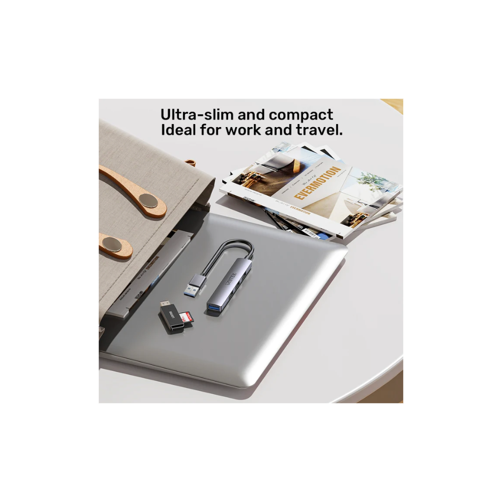 Unlock seamless connectivity with the UNITEK 4-in-1 USB-A Hub, featuring one USB-A 5Gbps port and three USB-A 480Mbps ports for high-speed data transfer. Its ultra-slim, lightweight design ensures portability, while universal compatibility with USB-A devices like MacBook and iPad Pro makes it the perfect plug-and-play solution for your on-the-go productivity.