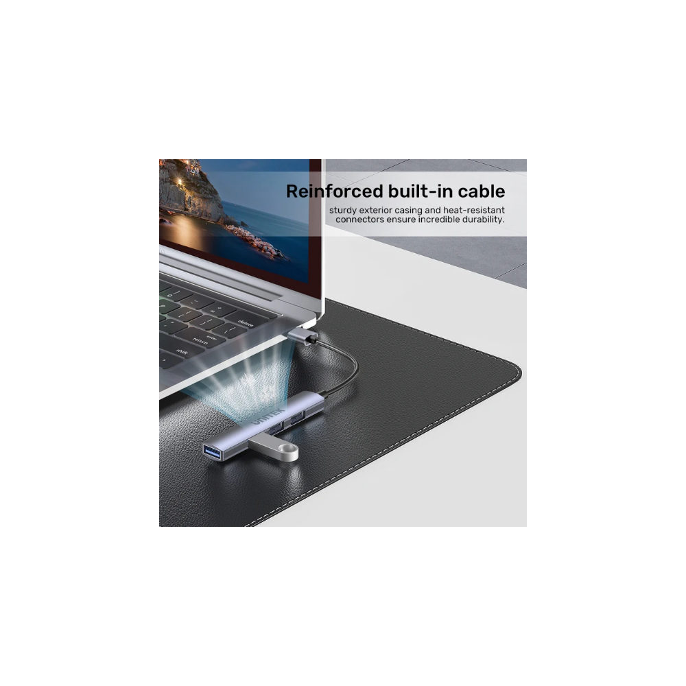 The UNITEK Ultra Slim 4-Port USB Hub features a reinforced built-in cable designed for superior durability. With a sturdy exterior casing and heat-resistant connectors, this hub ensures long-lasting performance while maintaining steady connectivity. Say goodbye to fragile cables that break easily—this reliable design is made to withstand daily use, making it ideal for both home and office environments. Enjoy peace of mind knowing your connections will remain strong and consistent.