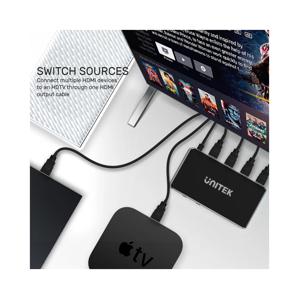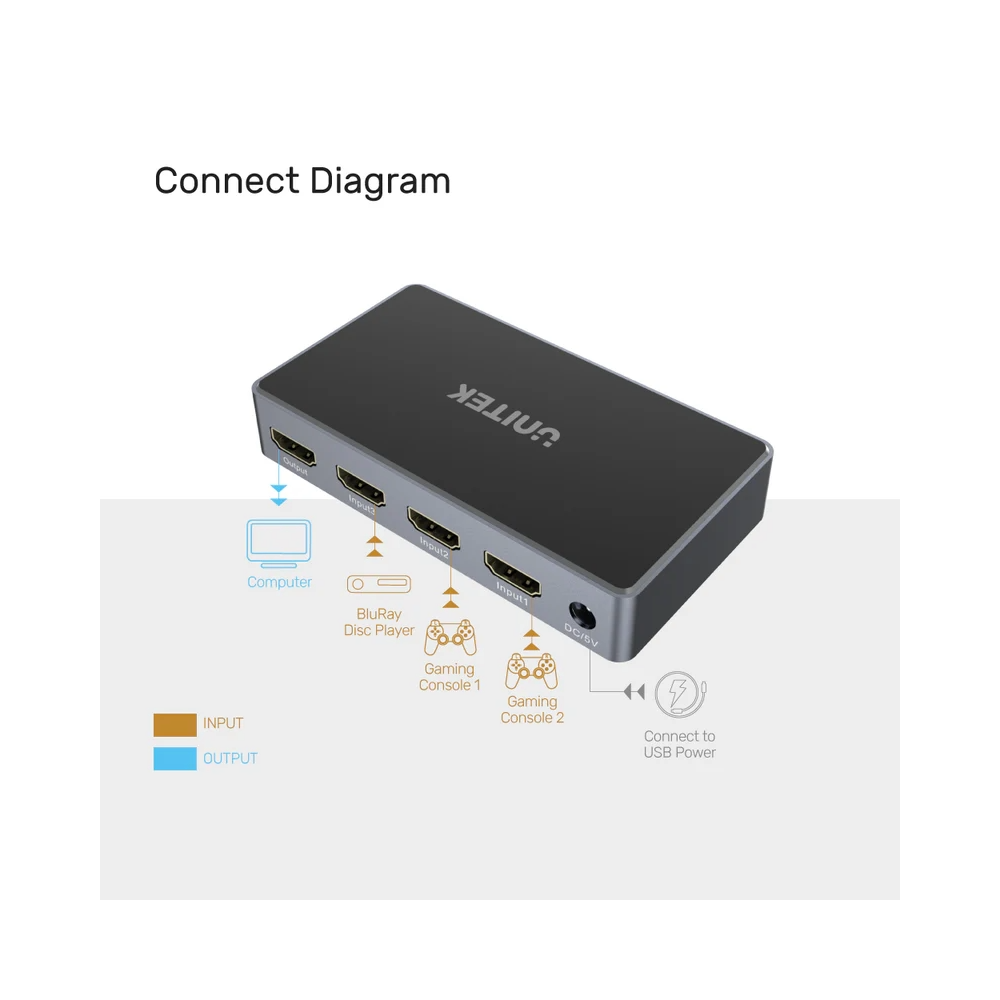 - Connect and switch between 3 HDMI inputs on 1 HDMI Output.