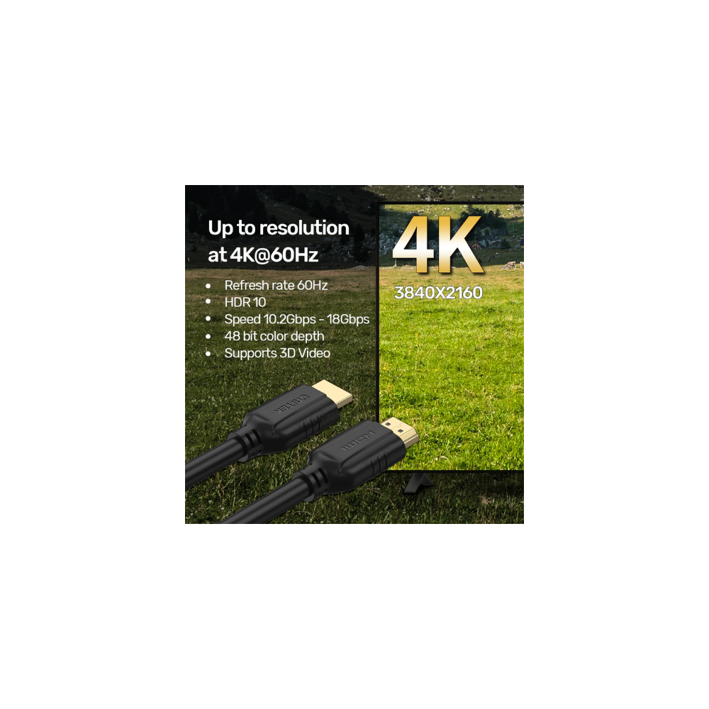 Elevate your video streaming and gaming with the UNITEK 4K HDMI Cable. Designed for high-definition performance, this cable ensures crystal-clear visuals and vibrant colors, making it perfect for movies, shows, and immersive gaming experiences. Enjoy seamless connectivity and reliable performance with a cable that supports the latest 4K content. Upgrade your entertainment setup and experience the difference.