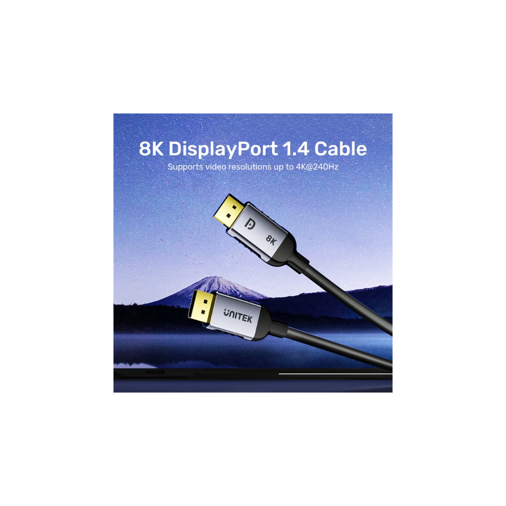 Available in lengths of 1M, 1.5M, 2M, 3M, and 5M, the UNITEK 8K DisplayPort cable features a robust aluminum alloy housing and gold-plated connectors. With foil-and-braid shielding, this cable offers ultra-durability and protection against wear and tear. Enjoy reliable performance and peace of mind, knowing your connection is built to last.