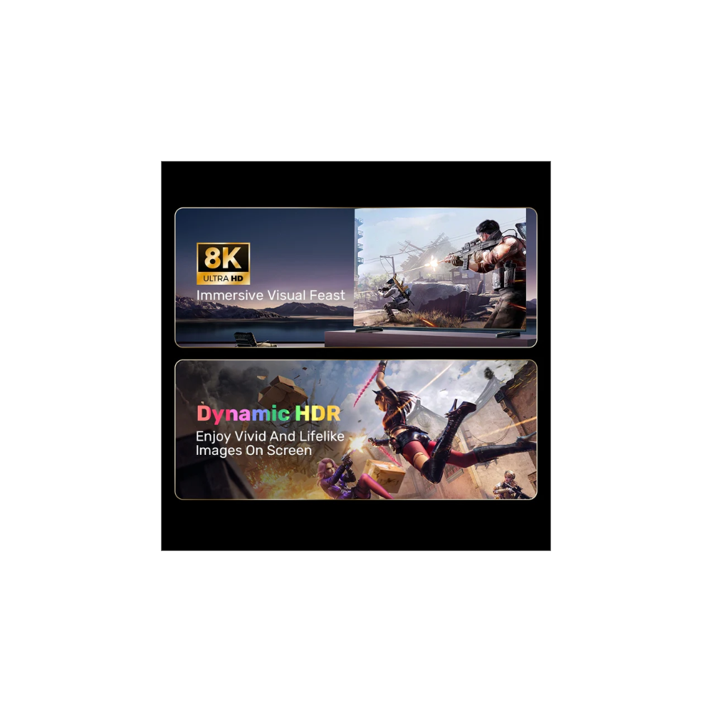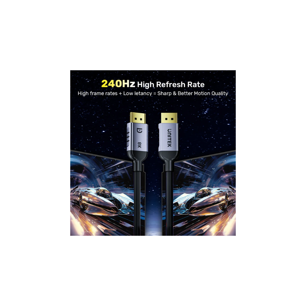 Enjoy stunningly vivid and lifelike images on your screen with Dynamic HDR technology. Immerse yourself in entertainment like never before, perceiving every movement clearly in games and 3D VR. With a maximum refresh rate of 240Hz and resolutions up to 8K@60Hz, the UNITEK 8K DisplayPort cable also supports up to 32 audio channels and a sample rate of 1,536kHz, delivering an authentic audio experience that complements your visual feast.