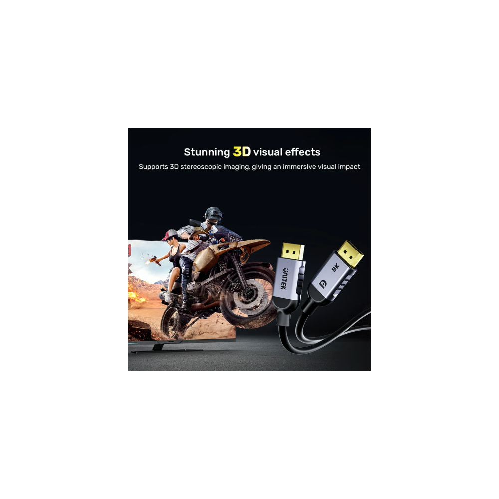 Experience breathtaking 3D stereoscopic imaging that delivers immersive visual impact. The UNITEK 8K DisplayPort cable supports stunning 3D visual effects, allowing you to dive into a world of rich depth and clarity. Transform your viewing experience with visuals that come to life, making every scene feel more engaging and realistic.