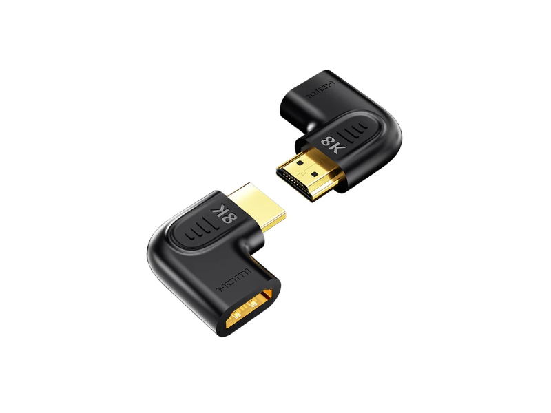The UNITEK 8K HDMI 90 Degree Adapter is ideal for connecting HDMI cables in limited or hard-to-reach spaces, such as behind equipment racks. It prevents excessive cable bending and avoids risks of cable damage.