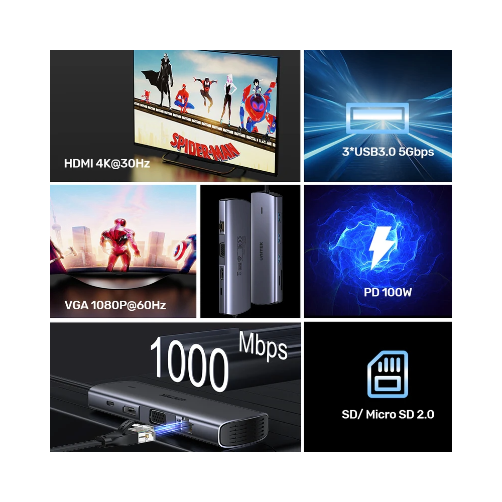 UNITEK 9-in-1 USB-C Hub with Dual Display, Dual Card Reader and 100W PD