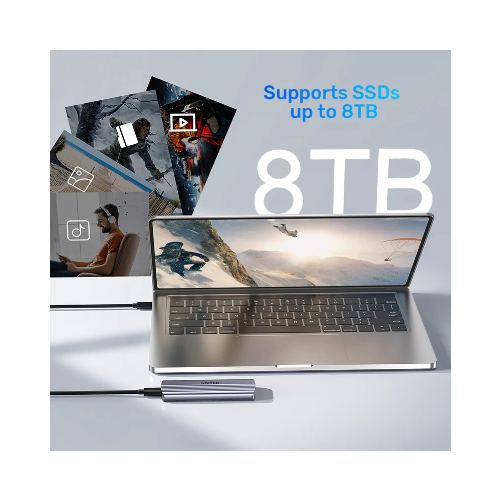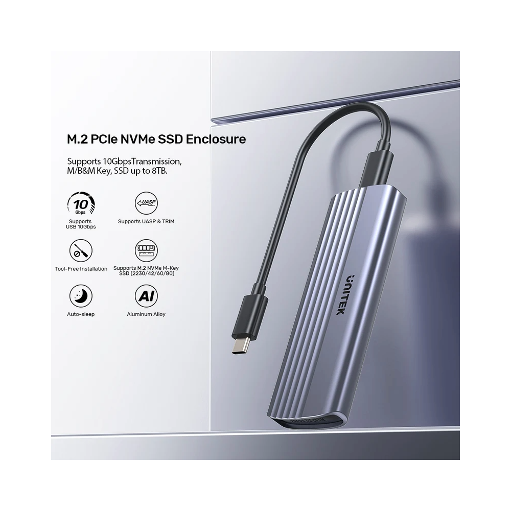 UNITEK M.2 PCIe NVMe SSD enclosure is specially designed to support NMVE protocol with both M or B&M keys and for 2230/ 2242/ 2260/2280 size SSDs up to 8TB.* Supports 10Gbps Transmission , M/B&M Key, SSD up to 8TB.