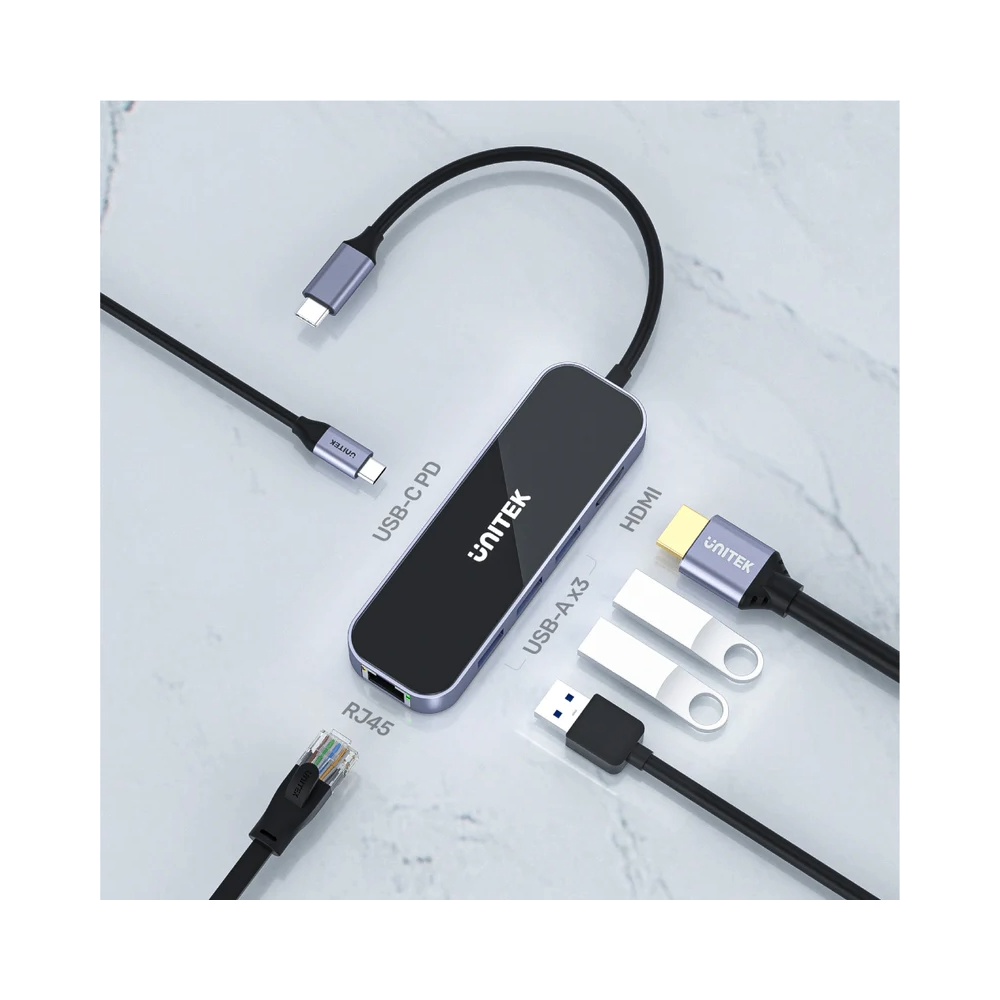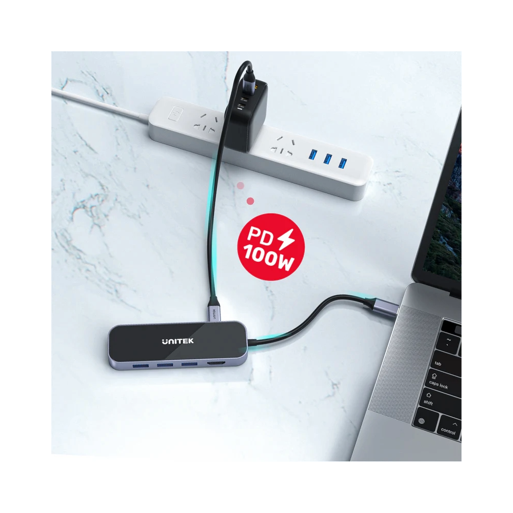 Unitek uHUB H6 Gloss 6-in-1 USB-C Ethernet Hub With HDMI and 100W Power Delivery