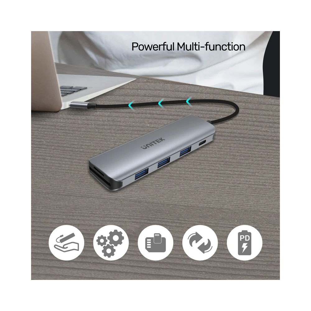 Unitek uHUB P5+ 6-in-1 USB-C Hub with 100W Power Delivery and Dual Card Reader