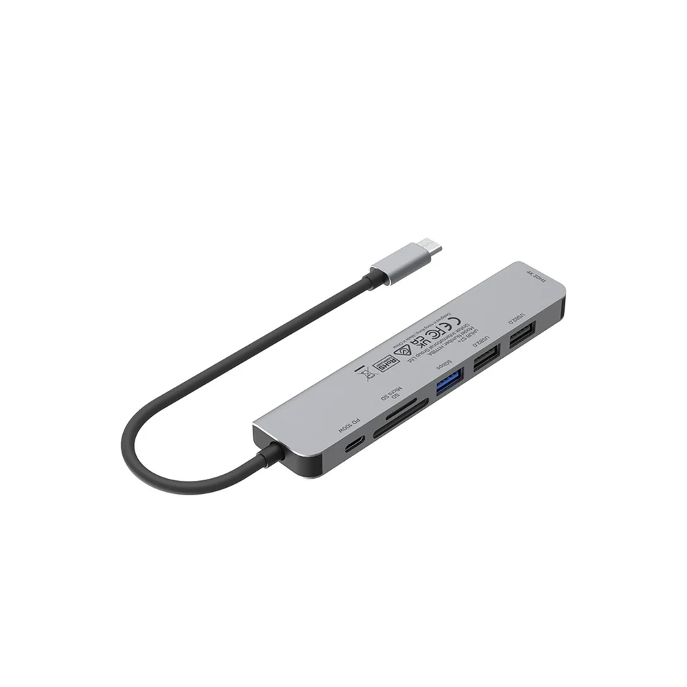 This all-in-one USB C adapter features 1 HDMI port, 1 USB 3.0 port, 1 SD/TF card reader, 100W PD charging port, and 2 USB 2.0 ports, accommodating a variety of devices.