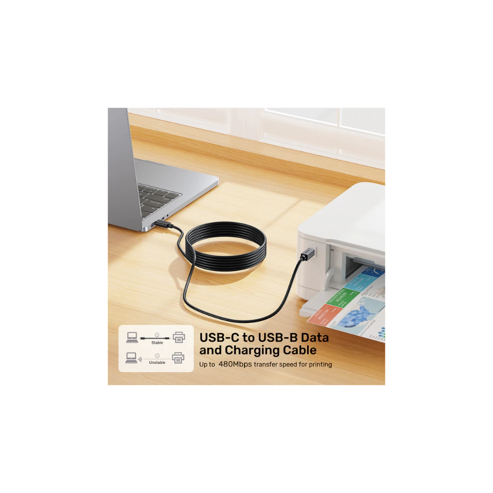 Experience stable and clear printing with the UNITEK USB-C to USB-B Data and Charging Cable. Designed with anti-oxidants and triple EMI shields, this cable enhances transmission performance while protecting against EMI/RFI noise. With transfer speeds of up to 480 Mbps, you can enjoy reliable printing without data loss, ensuring a seamless and convenient printing experience every time.