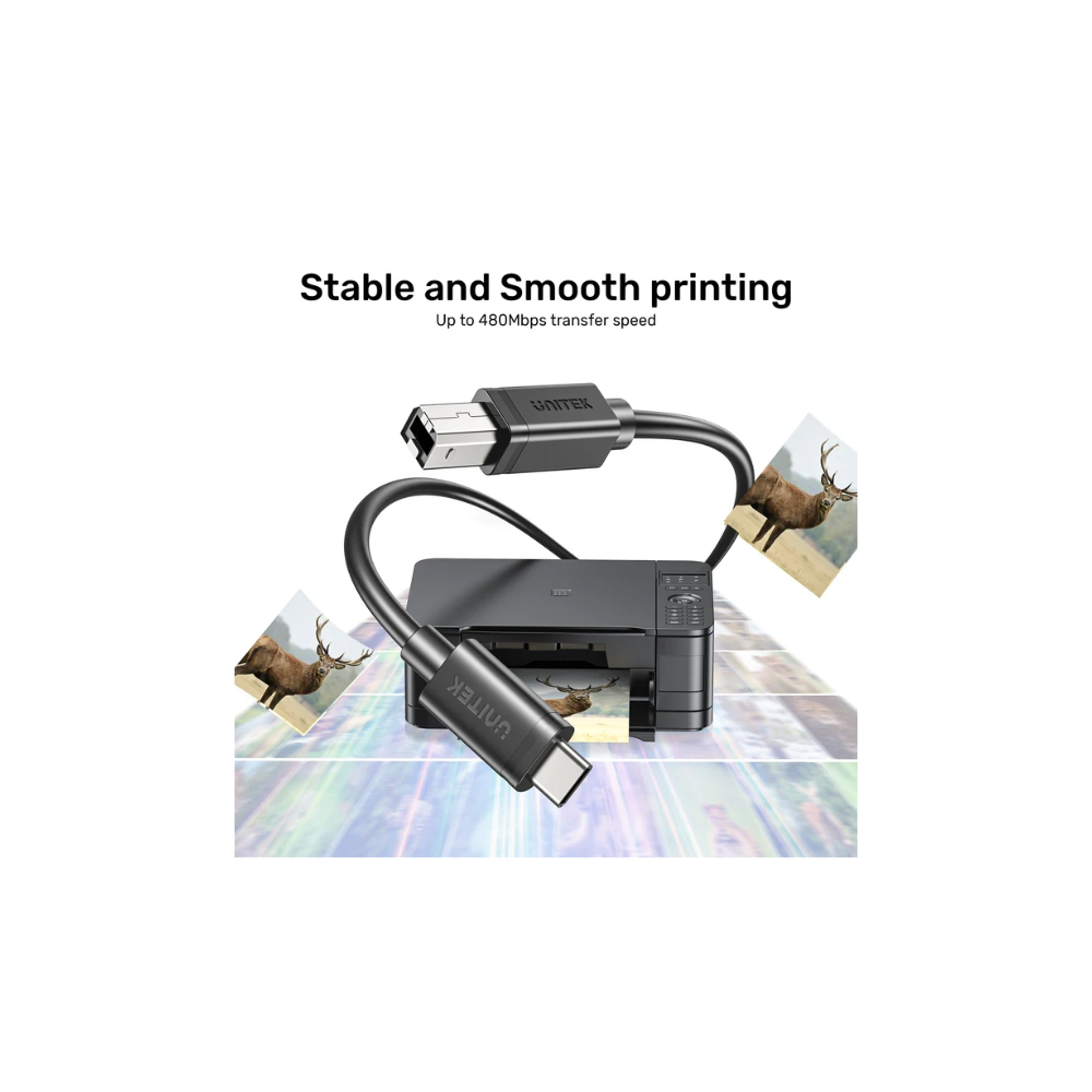 UNITEK USB-C to USB-B Cable is an ideal solution to connect USB -B scanners, printers, all-in-one machines, fax machines, and other USB-B devices to your USB-C laptop. This cable helps in transferring files and improves efficiency.