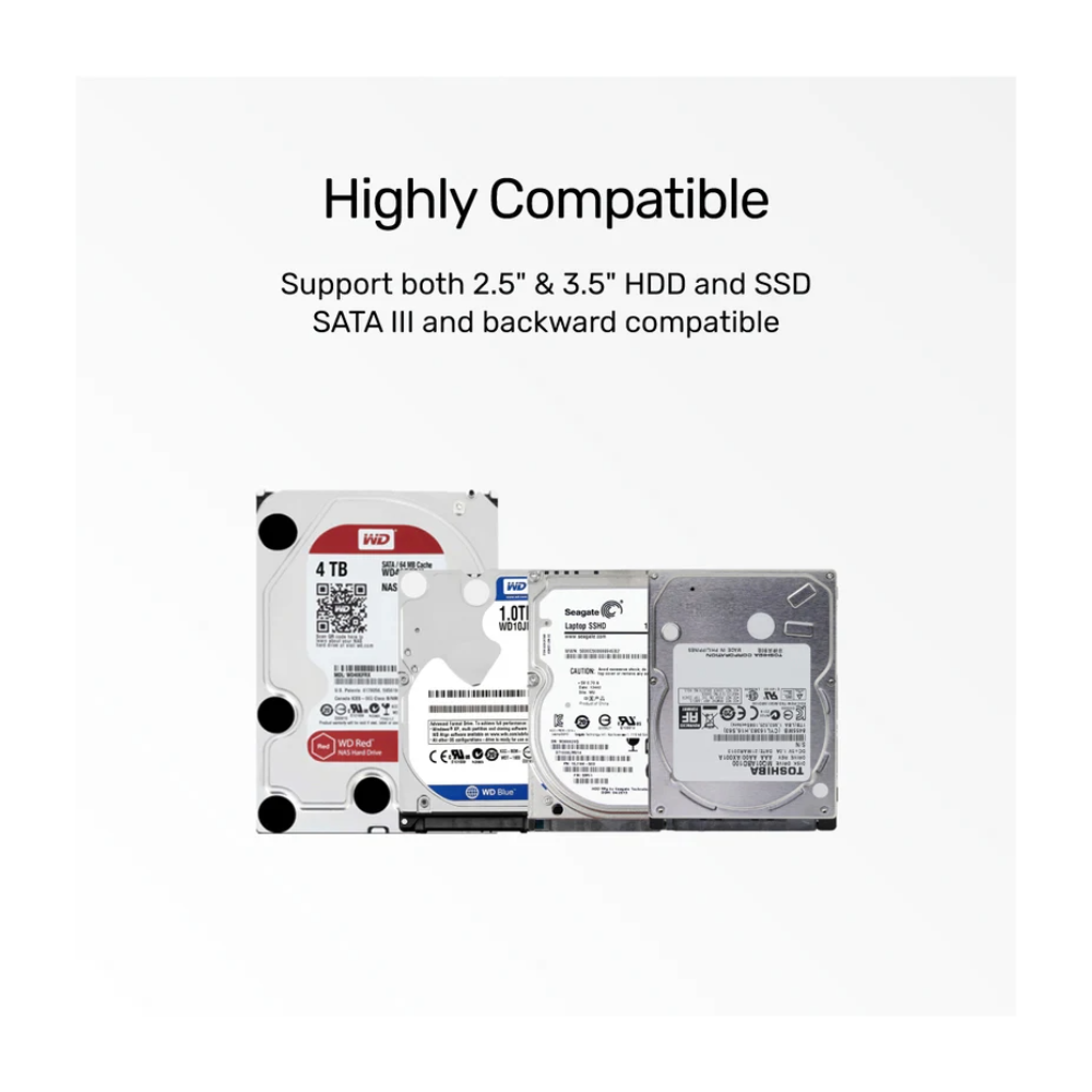 - Support 3.5″ and 2.5″ SATA HDD / SSD