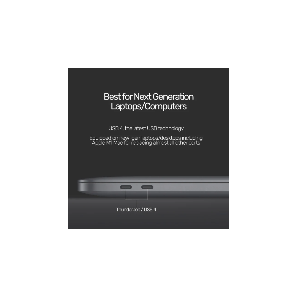 Designed for next-generation laptops and computers, offering 100W Power Delivery (PD) for fast charging and supporting 8K@60Hz video output with a remarkable 40Gbps data transfer rate. As the latest in USB technology, USB 4 is equipped on new-generation devices, including the Apple M1 Mac, effectively replacing multiple ports with its versatile capabilities. The USB4 specification enhances and builds upon the existing USB 3.2 and 2.0 architectures, providing a seamless and efficient connection for modern computing needs.