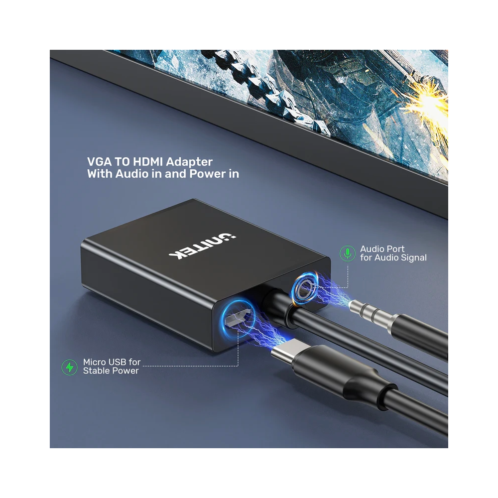 UNITEK VGA to HDMI adapter comes with audio cable, so users can easily connect