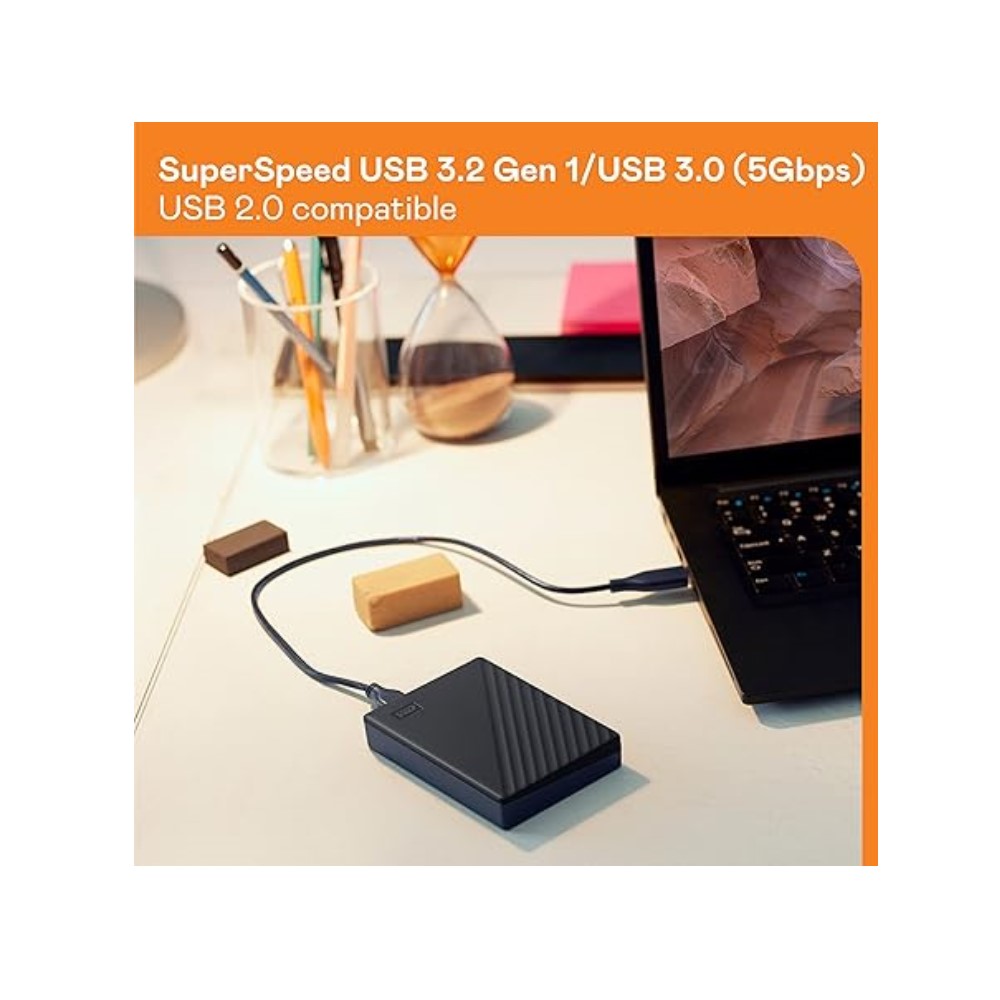 - EXTERNAL HARD DRIVE: My Passport portable hard drive, this high-capacity storage device provides seamless USB connectivity, enabling hassle-free access to your precious files anytime, anywhere.