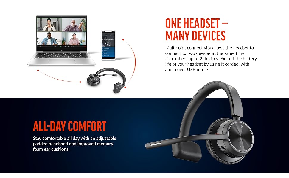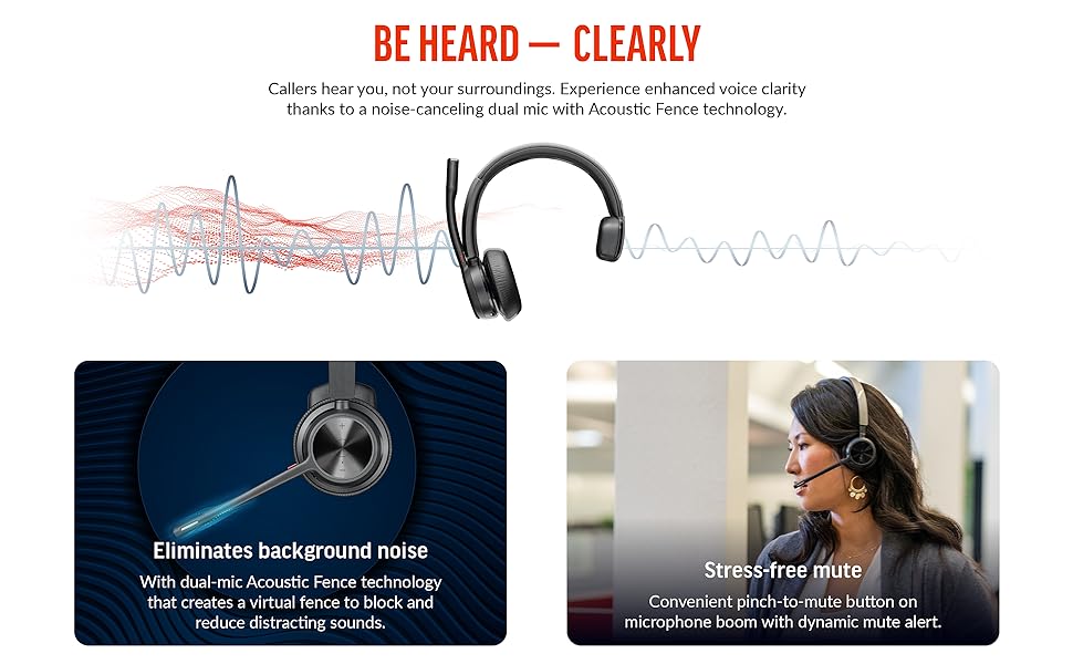 - Long day of calls made easier with all-day comfort and dual-mic Acoustic Fence technology that eliminates background noise.